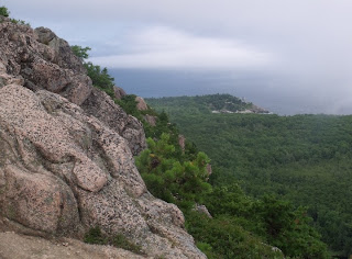 We did a lovely hike up a bubble-type hill called The Beehive.  The views were spectacular looking east and north over the Atlantic Ocean.  I would love to sit up here and paint the pink granite, yellow and green lichen overlooking the ocean but my knees were shaking too much from the climb.  I have started a few paintings in my journal that I will share soon.