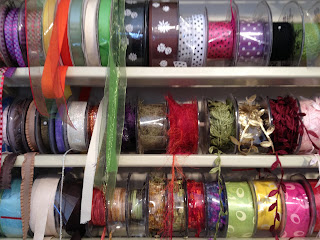 But you will also find an amazingly beautiful ribbon selection, great for altered books, tags and gifts.  There is a very colorful assortment of pens, glaze pens and more!
