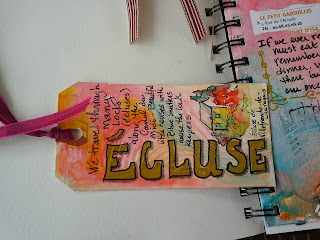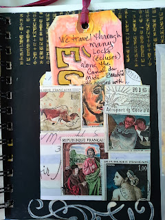 These are items that I can easily find in the office supply stores. I use gesso and water colors to create a beautiful, color filled background. My family is traveling down the Canal du Midi in the south of France. I love having these easy tools to create quick paintings on the go and embellish my journal. Here are a few photos from my journal as I am painting on our barge.